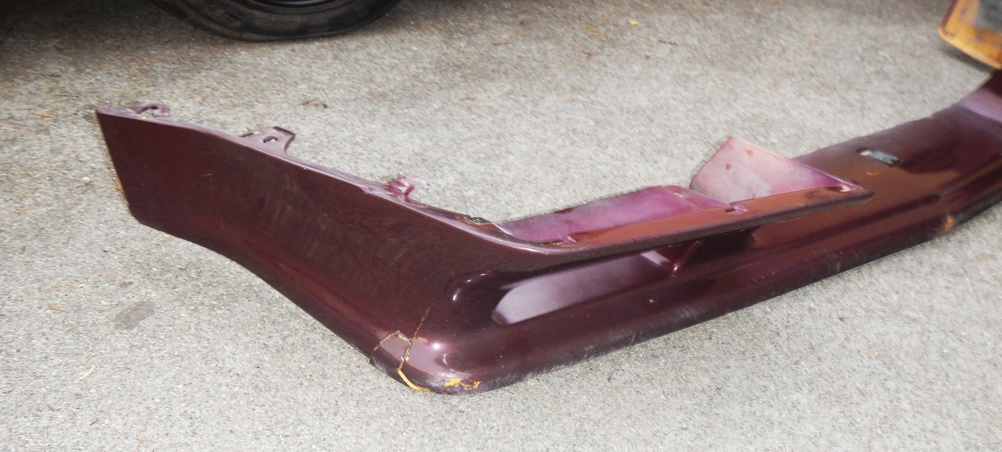 Used OEM urethane airdam in Durban color. Typical damage, but easily repaired by qualified staff.